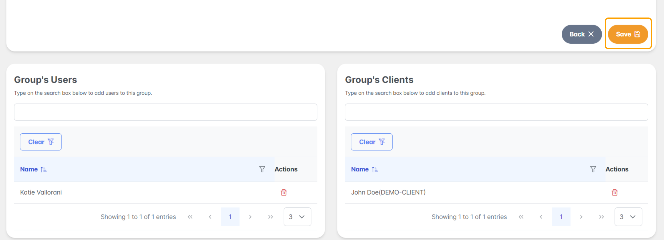 Step 4: Under the Group's Clients, you may type specific client names which belong to the group and select in the drop down