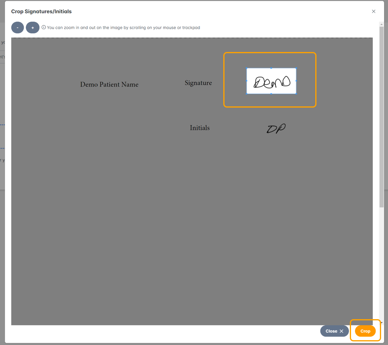 Step 3: Crop the client signature from the cropping tool. You may do this by using the field finder or by double clicking beside the signature.
