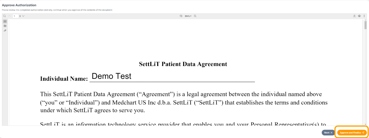 Congratulations you have now registered your client's signature on their SettLiT profile.