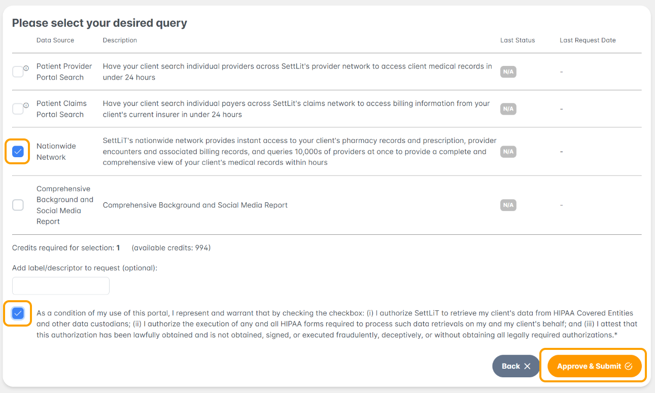 Check the condition box which confirms that you authorize SettLiT to retrieve the client's data.