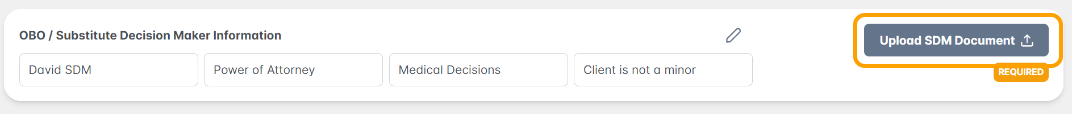 4. You will be taken back to the Client Profile screen where you will be asked to upload a supporting Substitute Decision Maker Document: