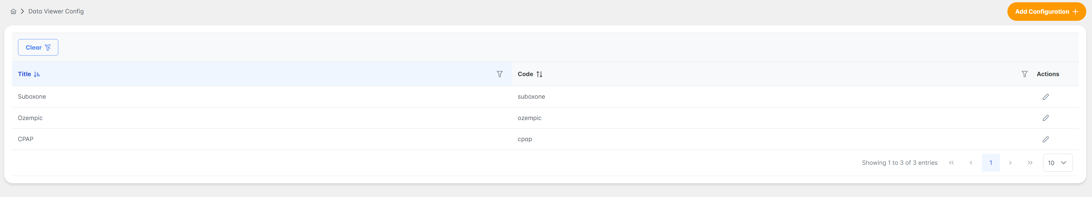 - To edit an entry, click the ✏️ Pencil icon under Actions.