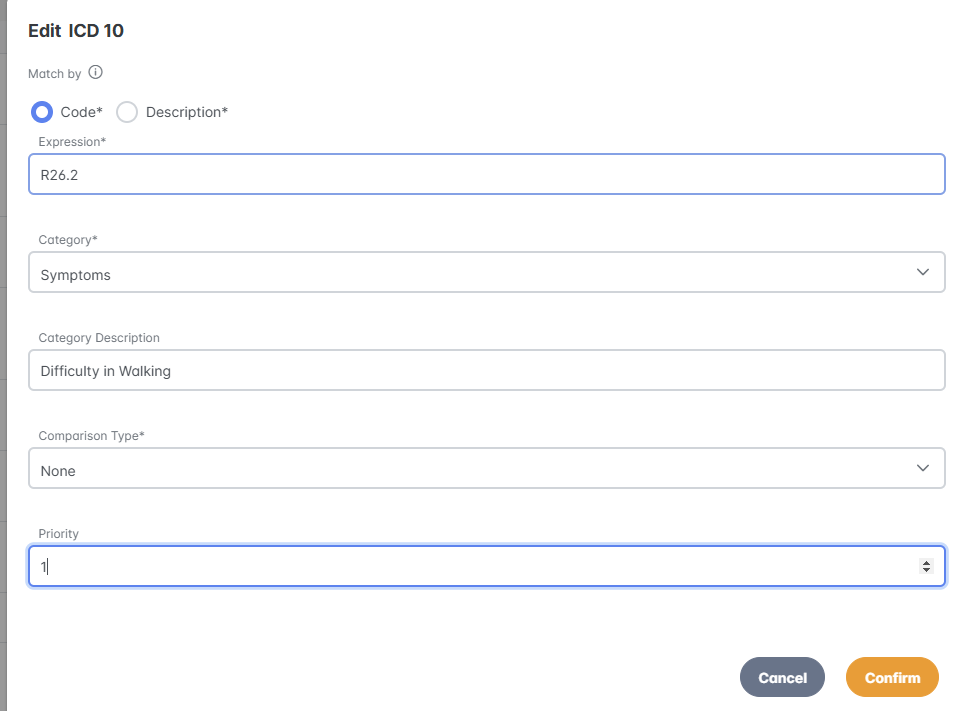 | Case Type | ICD Code/Keyword | Category | Priority |