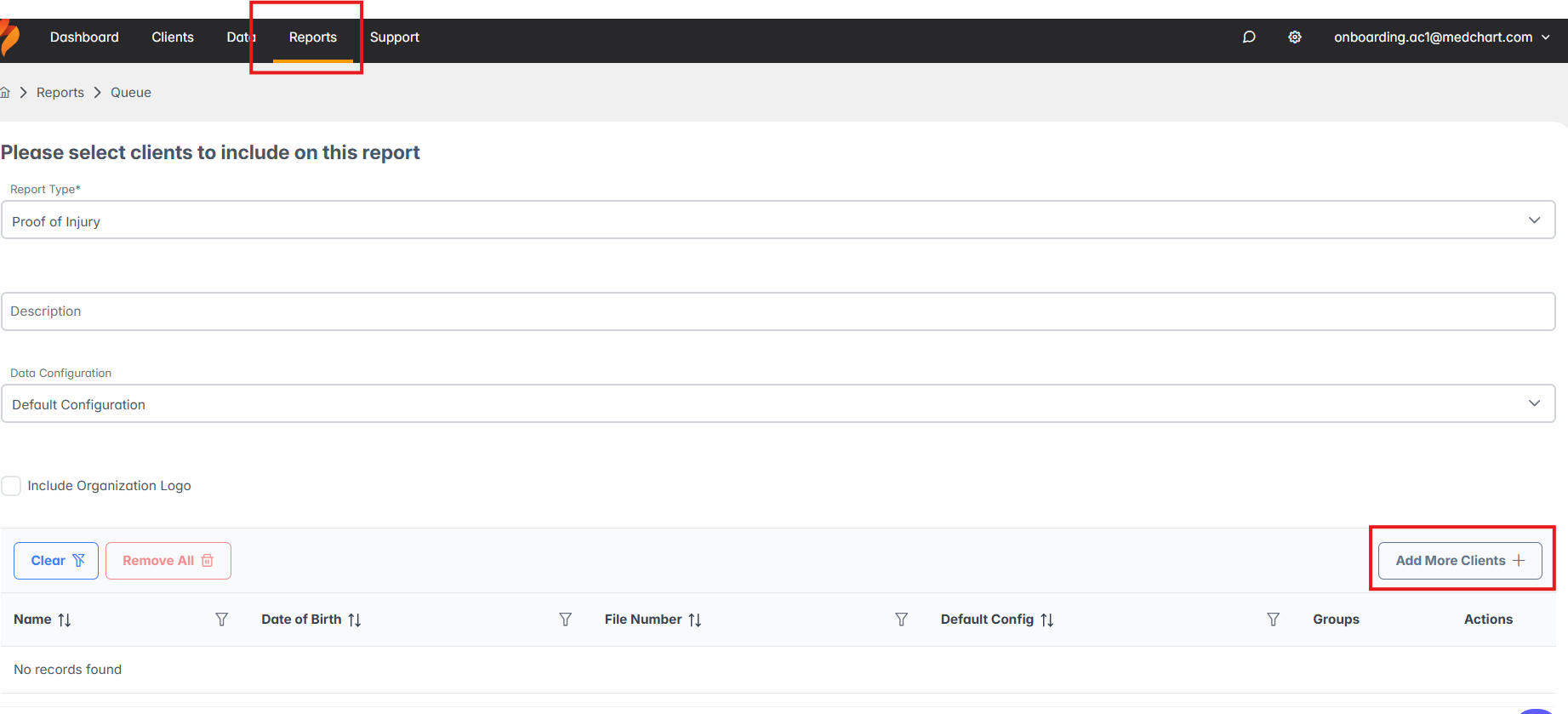 - Data Configuration (proof of injury only): will filter out only relevant codes to your report